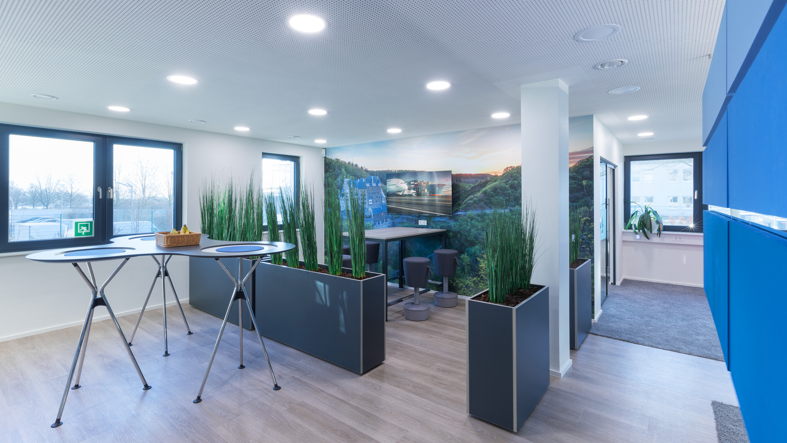 Das gesamte Ambiente ist auf zeitgemäße Wohlfühlatmosphäre abgestimmt. Die Mitarbeitenden schätzen das harmonisch komponierte Material- und Farbkonzept, das sich bei der Wand- und Bodengestaltung, bei der Büroeinrichtung und durch viele Accessoires auszeichnet. Dazu kommt die regenerative Gebäudetechnik, die hocheffizient ist und ein perfektes Klima schafft. Das räumliche Gesamtkonzept überzeugt außerdem durch eine hohe Nutzungsflexibilität, die den nachhaltigen Gebäudewert nochmals verstärkt.